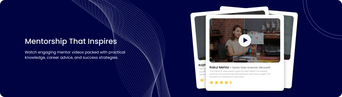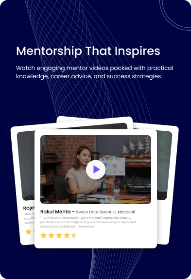 Get personal guidance from industry mentors who provide career advice, technical reviews, and interview prep tailored to your goals.